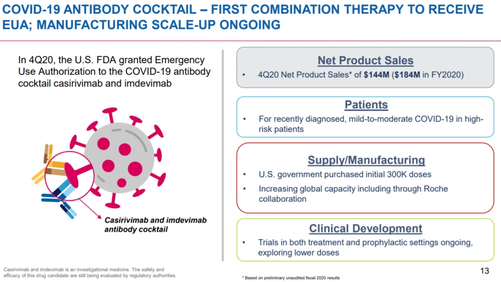 Den Angaben zufolge hat sich das Ministerium Kontingente von zwei der sogenannten monoklonalen antikörperhaltigen Arzneimittel gesichert. Es handele sich zum einen um den Antikörper Bamlanivimab, der vom US-Pharmaunternehmen Eli Lilly entwickelt wird, zum anderen um die die beiden gleichzeitig zu verabreichenden Antikörper Casirivimab/Imdevimab des US-Herstellers Regeneron. Monoklonale Antikörper werden im Labor hergestellt und sollen das Virus nach einer Infektion außer Gefecht setzen. Monoklonal bedeutet, dass die eingesetzten Antikörper alle gleich sind und das Virus an einem fest definierten Ziel angreifen.