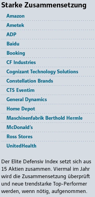 Der Auswahlprozess sorgt dafür, dass der EDI immer 15 Mitglieder hat. Aktuell sind prominente Namen wie Amazon, Baidu oder McDonald‘s mit von der Partie. Allerdings sind auch hierzulande eher unbekannte Werte wie Ametek, Cognizant Technology Solutions oder Ross Stores im Index vertreten. Aus Deutschland haben lediglich der MDAX-Konzern CTS Eventim sowie der Maschinenbauer Berthold Hermle den Sprung in den EDI geschafft.