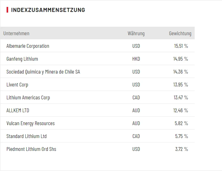 Kurzum: Mit dem Index-Zertifikat DA0AAS kann man den Index mit seinen neun Werten annähernd 1:1 nachbilden. Weitere Informationen inklusive der aktuellen Zusammensetzung zum Best of Lithium Index finden Sie hier.