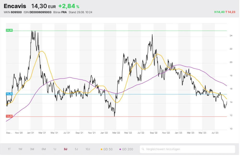 Nachdem der Solar- und Windkraftanlagenbetreiber Encavis am Freitag ein neues Jahrestief bei etwas mehr als 13 Euro erreichte, geht es heute mal zur Abwechslung in die andere Richtung. Aktuell legt die Aktie knapp drei Prozent zu, das ist der Grund.