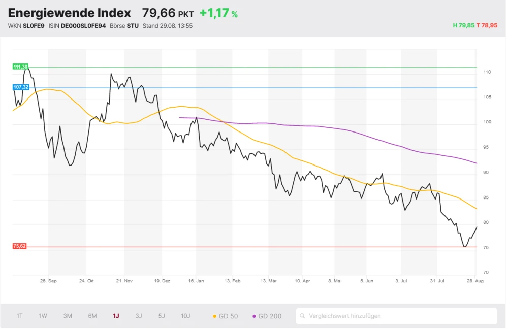 Die Aktie profitiert von der Hochstufung und legt an einem allgemein freundlichen Börsentag knapp drei Prozent zu. Ob damit allerdings schon eine Trendwende eingeleitet wird, ist eher fragwürdig. Zwar haben viele grüne Technologieaktien aufgrund der Kursverluste mittlerweile attraktivere Bewertungslevels erreicht, trotzdem sollten Anleger erst dann in die Aktie investieren, wenn diese einen Boden gebildet hat.