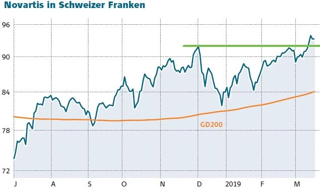 DER AKTIONÄR empfiehlt den Anlegern, insbesondere nach dem jüngsten charttechnischen Ausbruch die Gewinne bei Novartis laufen zu lassen. Für Dividendenjäger dürfte zudem die hohe Dividendenausschüttung von Interesse sein: Derzeit beträgt die Rendite 3,1 Prozent. Ein Stopp bei 65 Euro sichert die Position nach unten ab.