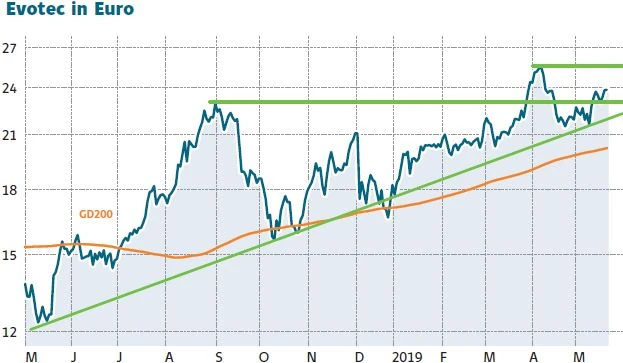 Beflügelt wurde das Papier zuletzt von starken Quartalszahlen sowie einer neuen Übernahme. Evotec kauft für bis zu 90 Millionen US-Dollar den US-Biologika-Experten Just Biotherapeutics. Der Kaufpreis beinhaltet eine leistungsbasierte, über drei Jahre laufende Earn-Out-Komponente, so Evotec. Der Erwerb von 100 Prozent der ausstehenden Anteile an dem Unternehmen wird in bar bezahlt. Mit einem Abschluss der Übernahme rechnet Evotec im zweiten Quartal des laufenden Jahres. Evotec wird seine Prognose gegebenenfalls spätestens mit der Veröffentlichung des Berichts zum ersten Halbjahr 2019 entsprechend anpassen, teilte Evotec weiter mit.