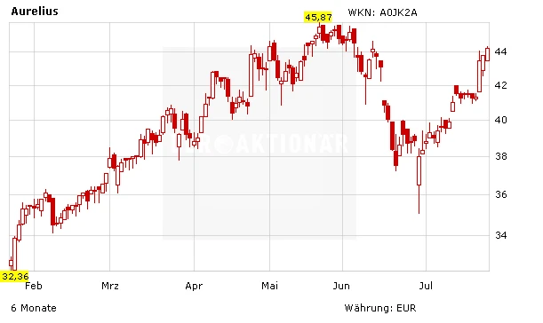 Die Aurelius-Aktie reagierte auf die Nachricht mit einem Kursplus von mehr als einem Prozent. Mit dem Sprung über das bisherige Jahreshoch von 45,87 Euro würde, würde ein Kaufsignal generiert werden. Für noch nicht investierte Anleger wäre das das Signal für einen Einstieg.