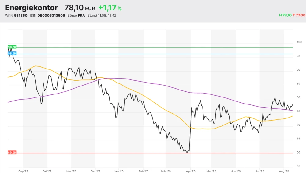 Seit Ende März hat Energiekontor fast 30 Prozent zugelegt und hat Mitte Juli erfolgreich die 200-Tage-Line nach oben verlassen. Das Kerngeschäft des Konzerns erstreckt sich von der Planung über den Bau bis hin zur Betriebsführung von Wind- und Solarparks. Der wesentlich geringere Teil des Geschäfts ist das Betreiben von Wind- und Solarparks aus dem eigenen Bestand. Die Konzernzahlen belegen das funktionierende Geschäftsmodell der Bremer. Mit einem aktuellen KGV von 21 ist die Aktie fair bewertet. Aus heutiger Sicht spricht nichts dagegen, dass eine oder andere Stück ins Depot zu legen.