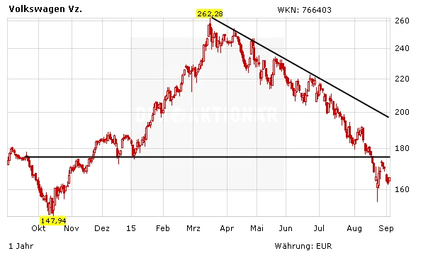 Die wichtigsten Personalfragen hat VW geklärt. Die Probleme sind dadurch allerdings nicht gelöst. Vor allem die starke Abhängigkeit von China belastet. Es gibt also viel Arbeit für den neuen und alten Konzernchef Winterkorn. Auch charttechnisch spricht die Situation derzeit nicht für einen Einstieg. Anleger bleiben vorerst an der Seitenlinie.