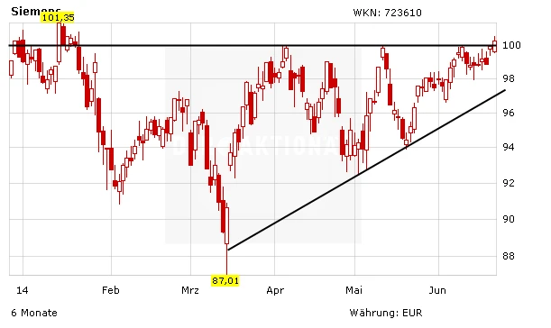Trotz des verlorenen Übernahmepokers bleibt Siemens einer der Favoriten des AKTIONÄR für das zweite Halbjahr. Ein Zusammenschluss mit Alstom hätte nicht nur Vorteile gebracht, der DAX-Konzern hätte auch viele Probleme des angeschlagenen französischen Konzerns erst in den Griff bringen müssen. Die Aktie notiert im Bereich der 100-Euro-Marke. Langfristig ist das Kursziel 125 Euro. Für einen Neueinstieg ist es noch nicht zu spät.
