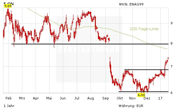 Nach den deutlichen Verlusten im vergangenen Jahr ist die E.on-Aktie seit Jahresbeginn auf einem guten Weg. Langfristig muss der Konzern zwar erst noch beweisen, dass man in der Lage ist, mit Erneuerbaren Energien Geld zu verdienen. Durch den guten Newsflow und das starke Chartbild ist die Aktie für Trader aber in jedem Fall interessant. Das nächste Ziel ist die 8,00-Euro-Marke.