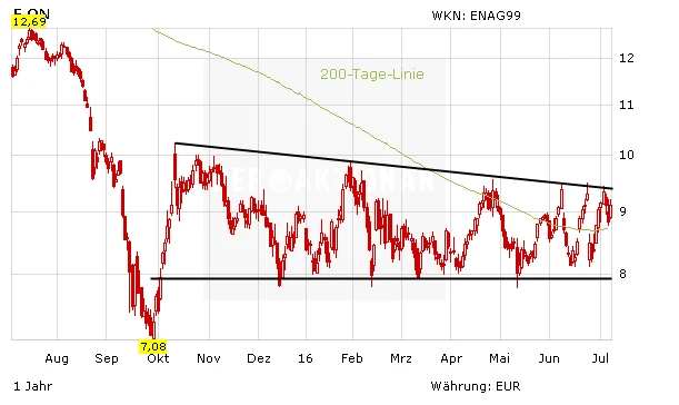 Durch das deutliche Kursplus in den vergangenen zwei Wochen hat sich das Chartbild bei E.on wieder klar verbessert. Trotz des Kurssturzes unmittelbar nach dem Brexit-Referendum steht die Aktie des Versorgers inzwischen vor dem Ausbruch aus der Seitwärtsbewegung.