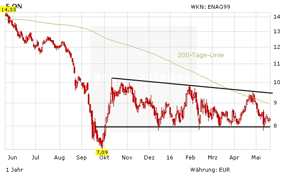 E.on hat nach wie vor mit zahlreichen Problemen zu kämpfen. Auch charttechnisch hat sich das Bild zuletzt wieder eingetrübt. Ob die Abspaltung von Uniper Erfolg verspricht, ist weiter ungewiss. Anleger sollten das Risiko derzeit nicht eingehen und an der Seitenlinie bleiben.