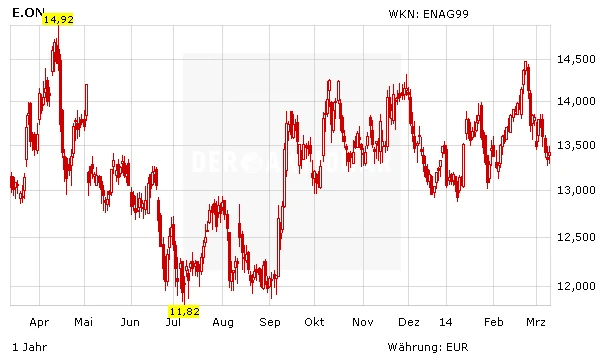 Bei dem unter der Energiewende leidenden Strom- und Gasversorger E.on blicken Anleger nach vorn. Belastet von Rückgängen bei der Stromerzeugung hat der Konzern 2013 voraussichtlich kaum halb so viel verdient wie im Vorjahr. Wegbrechenden Erlösen aus fossilen Kraftwerken stellen die Düsseldorfer das Geschäft mit Ökostrom sowie Aktivitäten in der Türkei und Brasilien gegenüber. Das Ruder herumreißen wird dies so schnell nicht, dennoch sind Anleger bei der Bilanzvorlage am Mittwoch (12. März um 7:30 Uhr) gespannt auf Aussagen zu 2014.