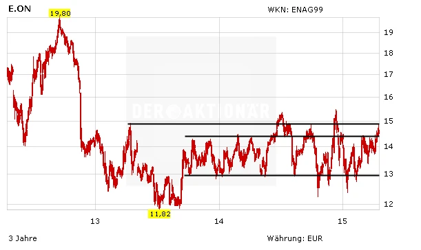 Der Umbau bei E.on schreitet weiter voran. Ob die neue Strategie allerdings erfolgreich ist, steht nach wie vor in den Sternen. Charttechnisch bleibt das Bild mit dem langfristigen Seitwärtstrend ebenfalls stark eingetrübt. Trotz der attraktiven Dividendenrendite von 4,2 Prozent sollten Anleger deshalb weiter an der Seitenlinie bleiben.