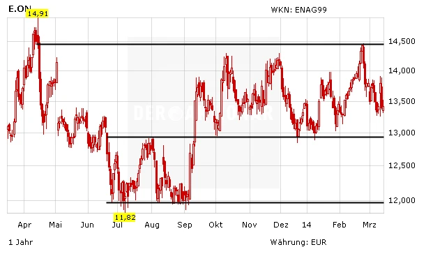 Im Zuge der Krim-Krise ist auch E.on unter Druck geraten. Am Freitag fällt die Aktie des Energieversorgers weiterhin in Richtung der wichtigen Unterstützung bei knapp 13 Euro. Die Analysten sind sich nach den Zahlen weiterhin uneinig über die weitere Entwicklung des DAX-Konzerns.
