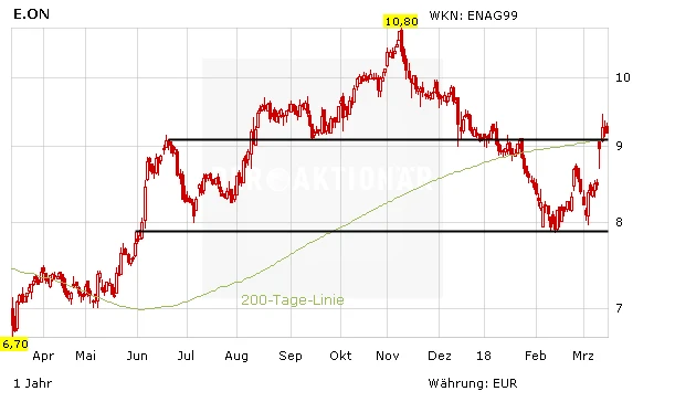 Die E.on-Aktie hat nach dem Megadeal mit RWE deutlich zugelegt. Mit dem Fokus auf Netze und Vertrieb könnte der Konzern wieder zum Witwen- und Waisenpapier werden. Das große Wachstum fehlt zwar, als sicherer und verlässlicher Dividendenzahler bleibt die Aktie aber attraktiv. Haben die Pläne im Netzgeschäft Erfolg, sind aber auch deutlich höhere Kurse durchaus möglich. Anleger lassen die Gewinne laufen und belassen den Stopp bei 7,80 Euro.