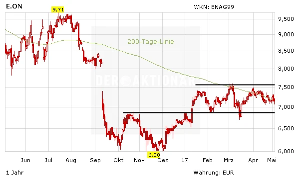 Mit dem Fokus auf die zukunftsfähigen Geschäftsbereiche hat E.on einen radikalen Schnitt vollzogen. Der Wandel zum „grünen Versorger“ könnte nun noch einige Zeit dauern. Kann Wildberger seine Pläne umsetzen, könnte sich dies durchaus auszahlen. Die Risiken sind bei dem finanziell angeschlagenen Konzern aber nach wie vor groß. Wer investiert ist, sichert seine Position mit einem Stopp bei 5,70 Euro ab.