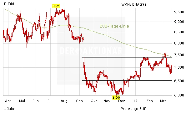 Die Umfrage zeigt: Es ist noch ein langer Weg, bis zum endgültigen Durchbruch der E-Autos. Wenn es soweit ist, könnten die Versorger mit den Ladestationen aber einer der großen Profiteure sein. Bei E.on hat sich das Bild zuletzt wieder verbessert. Die Kapitalerhöhung wurde überraschend gut weggesteckt. Zudem hält sich die Übernahmefantasie in der Branche. Mutige bleiben an Bord.