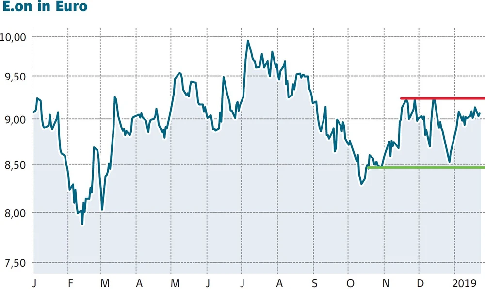 Neuen Rückenwind gibt es am Dienstag für die Aktie des Versorgers E.on. Eine Kaufempfehlung der britischen Investmentbank HSBC treibt die Aktie an und könnte einen Impuls für den nachhaltigen Ausbruch aus der Seitwärtsbewegung geben. Denn nach wie vor notiert der Kurs nur knapp oberhalb der 9,00-Euro-Marke.