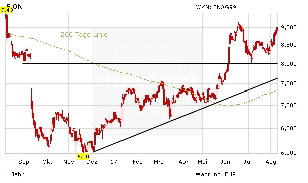 Am Mittwoch hat E.on Zahlen zum ersten Halbjahr präsentiert. Wie die Tochter Uniper am Vortag kann auch die Mutter überzeugen. Der Versorger konnte die Bilanz stärken und die Ausschüttungsquote dank der Rückzahlung der Brennelementesteuer erhöhen. Im Vergleich zum ersten Quartal lief es zuletzt wieder deutlich besser.
