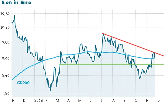 Die verbesserte Bilanz steht symptomatisch für die positive Entwicklung von E.on. Nach der jahrelangen Talfahrt hat der Versorger die Krise inzwischen hinter sich gelassen. Mit dem Fokus auf Netze und Kundendienstleistungen ist der DAX-Konzern auch für die neue Energiewelt gut positioniert. Anleger setzen darauf, dass die 200-Tage-Linie verteidigt wird und geben kein Stück aus der Hand. Stopp: 7,80 Euro.