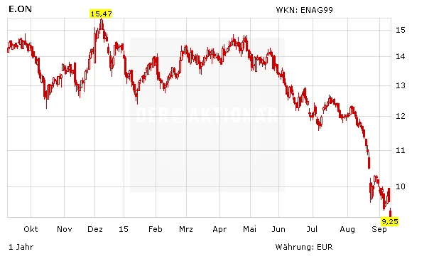 Atom-Abspaltung geplatzt, stattdessen erneut Milliarden-Abschreibungen und ein dickes Minuszeichen unter der Jahresbilanz – es sind düstere Aussichten, die E.on-Chef Johannes Teyssen nach der gestrigen Aufsichtsratssitzung präsentieren musste. Da verwundert es kaum, dass die E.on-Aktie am Donnerstag zu den schwächsten Werten im DAX gehört.