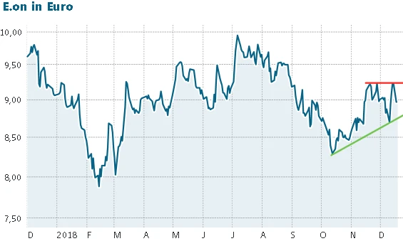 Intelligente Stromzähler sind ein potenzieller Megamarkt für E.on. Der Konzern ist auch insgesamt gut aufgestellt für die neue Energiewelt. Auch wenn sich das Chartbild durch das Aus der Vertriebsfusion von SSE und der künftigen Tochter Innogy in Großbritannien wieder etwas eingetrübt hat, steht der Versorger an der Börse derzeit deutlich besser da als die zyklischen Werte. Anleger bleiben unverändert an Bord und beachten den Stopp bei 7,80 Euro.