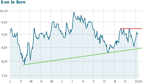 Nicht vergessen werden sollte auch der Termin für die nächste Dividende. Hier ist es allerdings erst im Mai soweit. Am 14. Mai findet die Hauptversammlung statt, Ausschüttungstag dürfte voraussichtlich der 17. Mai sein. Die Dividende soll sich dann auf 43 Cent je Aktie belaufen, nach 30 Cent im Vorjahr. Es ist die dritte Steigerung in Folge, die Rendite beträgt damit stattliche 4,8 Prozent. Positiv zudem: Auch für die kommenden Jahre ist die Ausschüttung kaum gefährdet, allein das lukrative und staatlich garantierte Netzgeschäft sichert E.on auch künftig attraktive Gewinne.