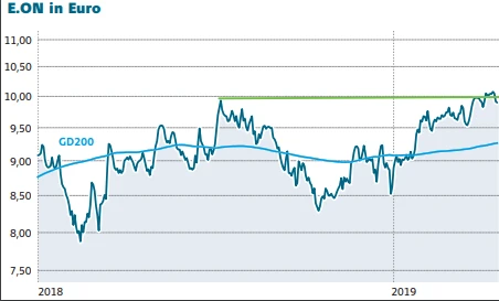 Am Montag notiert die E.on-Aktie nahezu unverändert bei 9,93 Euro. Die Papiere befinden sich damit weiterhin in greifbarer Nähe der wichtigen 10-Euro-Marke. Sollte E.on die Fusion gelingen, könnte dies eine weitere Kursrallye in Gang setzen und die Aktie nachhaltig über die psychologisch wichtige 10-Euro-Marke treiben. Die Aktie bleibt ein Kauf.