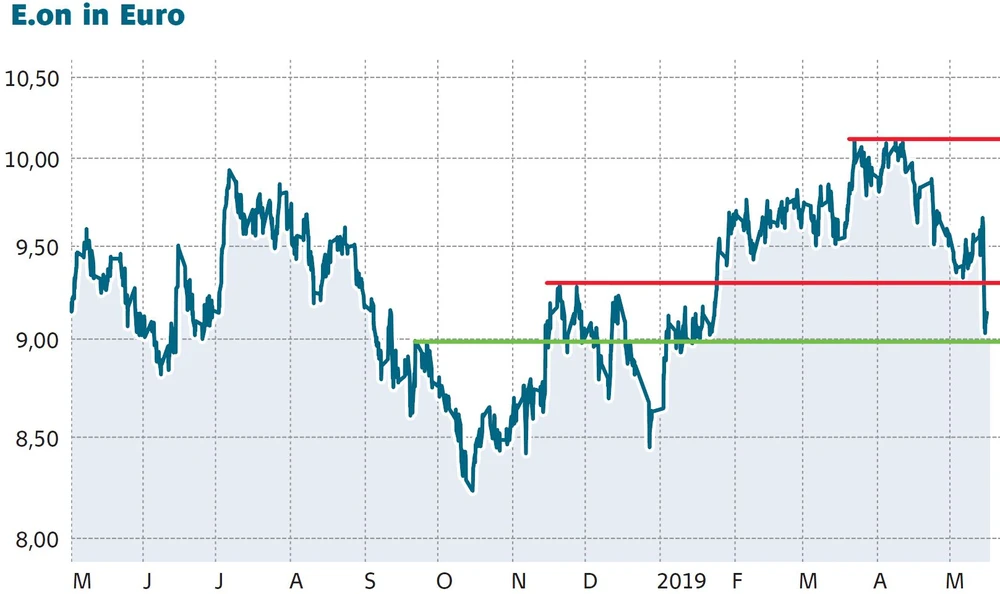 Es ist eine turbulente Woche für E.on $DE000ENAG999. Nach den Zahlen, der Hauptversammlung und dem Dividendenabschlag sollte sich die Lage nun wieder stabilisieren. Sowohl operativ als auch bei der Übernahme von Innogy ist E.on weiter auf Kurs. Doch das Chartbild hat sich eingetrübt, die Aktie notiert nur noch knapp über der 9,00-Euro-Marke.