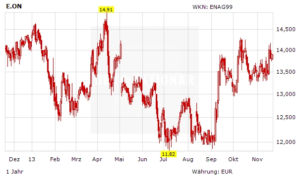 Die Experten von Börse Online haben nach Aktien gesucht, welche die Kursrallye des nun ablaufenden Jahres nicht mitgemacht und deren Notierungen jetzt als Nachzügler steigen dürften. Der Aktienkurs von E.on blieb in den vergangenen Monaten lediglich in etwa stabil. Die Zahlen des Energieversorgungs-Unternehmens werden von politischen Vorgaben und den gesunkenen Großhandels-Preisen für Strom belastet. In den ersten neun Monaten des laufenden Jahres verdiente E.on zwar 2,1 Milliarden Euro, doch war das nur halb so viel wie ein Jahr zuvor. Vorstandsvorsitzender Dr. Johannes Teyssen forderte deshalb jüngst von den Politkern, den Steuerzahlern Geld abzunehmen und dem Konzern zu geben. Das sei nötig, um Gas- und Kohlekraftwerke betreiben und am Markt bestehen zu können. E.on betreibt jedoch ein breit aufgestelltes Geschäft, hat eine gute Position bei erneuerbaren Energien sowie im Vergleich zu vielen Wettbewerbern Vorteile in der Öl- und Gasförderung. Die Chancen sind also gut, gestärkt aus den weiter schwierigen Rahmenbedingungen hervorzutreten. Der Gewinn je kaufenswerter Aktie dürfte im nächsten Jahr auf 1,11 Euro steigen, was einem KGV von 12 entspräche.