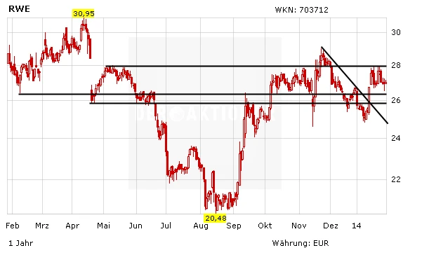 Die gestern angekündigten zusätzlichen milliardenschweren Abschreibungen sind nicht nur von den Märkten, sondern auch von den Analysten aufmerksam verfolgt worden. Die US-Investmentbank Goldman Sachs hat das Kursziel für RWE nach den Zusatzabschreibungen von 3,3 Milliarden Euro von 31 auf 32 Euro angehoben und die Einstufung auf "Neutral" belassen.