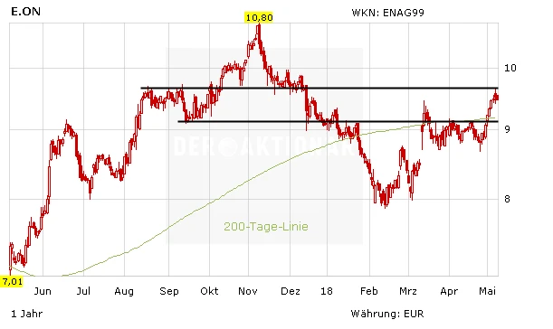 Die Zustimmung der Aktionäre für den Innogy-Deal zeigt, dass sich E.on auf dem richtigen Weg befindet. Als Energiedienstleister positioniert sich der Konzern in der neuen Energiewelt neu. Wie gefordert sollte die Aktie damit wieder zum Witwen- und Waisenpapier werden. Anleger greifen zu. Wer heute bei Handelsschluss im Besitz der Papiere ist, darf sich zudem über eine Ausschüttung von 0,30 Euro je Aktie freuen.