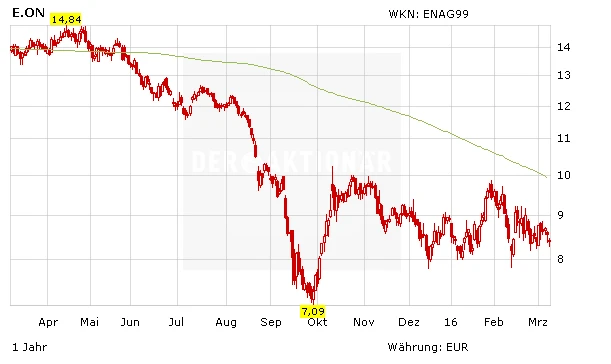 Die Aktie von E.on notiert am Mittwochmorgen trotz des Rekordverlustes und des schwachen Ausblicks deutlich im Plus. Einige Anleger hatten mit noch schlechteren Ergebnissen gerechnet. Mutige Trader können nun auf eine kurzfristige Erholung wetten. Alle anderen sollten den Vorsorger-Titel weiterhin meiden.