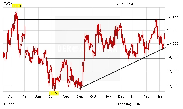 Weitere Analystenmeinungen kommen von der Credit Suisse und der Commerzbank. Die Schweizer Bank empfiehlt die Aktie zum Verkauf bei einem Kursziel von elf Euro. Eine Halteposition ist die E.on-Aktie derweil für die Commerzbank. Den fairen Wert sieht Analystin Tanja Markloss bei 13 Euro.