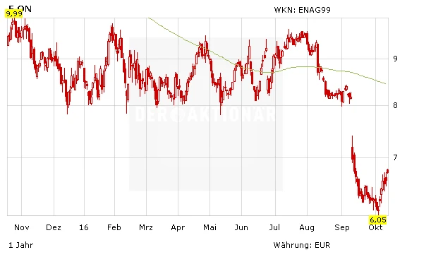 E.on droht angesichts der eigenen teuren Aufspaltung und des Verfalls der Strompreise im Großhandel in diesem Jahr der nächste Rekordverlust. Schon in den ersten sechs Monaten hatte E.on wegen Abschreibungen auf die inzwischen abgespaltene Kraftwerks- und Handelstochter Uniper einen Verlust von 3 Milliarden Euro verbucht.