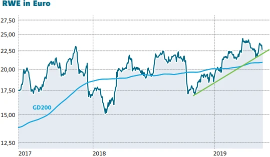 RWE sollte dagegen von eher spekulativ orientierten Anlegern bevorzugt werden. Der Kohle-Ausstieg ist zwar beschlossene Sache, die Details sind jedoch noch nicht geklärt. Mit der Rückbesinnung auf Erneuerbare Energien kann der Konzern aber zuversichtlich in die Zukunft blicken. Auch bei RWE wurde der Aufwärtstrend zuletzt positiv getestet. Die Aktie sollte die Aufwärtsrallye zunächst weiter fortsetzen. Aktuell ist RWE in der Branche der etwas dynamischere Wert.