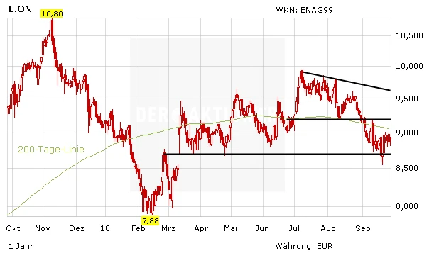 Abgestuft wurde auch die Aktie des ewigen Rivalen E.on. RBC-Analyst John Musk hat das Votum von „Outperform“ auf „Sector Perform“ und das Kursziel von 10,25 auf 9,50 Euro gesenkt. E.on habe sich zuletzt im Branchenvergleich am schwächsten entwickelt, so Musk. Daran dürfte sich auch nichts ändern, da es kaum noch Kurstreiber gebe.