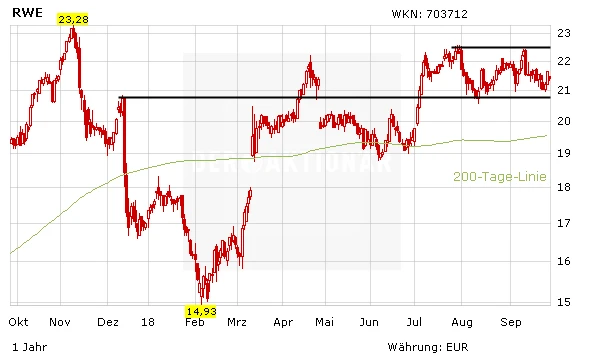 Stärkster DAX-Wert im laufenden Jahr ist RWE. Mit Innogy gebe der Konzern künftig aber sein wertvollstes Gut aus der Hand, bemängelt Analyst Ingo Becker von Kepler Cheuvreux. Der Markt begrüße zwar, dass sich der Konzern mit den erneuerbaren Energien auf eine Zukunftstechnologie konzentriere, es sei aber ein Trugschluss, damit Wachstum zu verbinden. Rückläufige Subventionen und die Lebensdauer der Anlagen sprächen dagegen. Becker stuft die Aktie von „Hold“ auf „Reduce“ ab, sein Kursziel liegt unverändert bei 20 Euro.