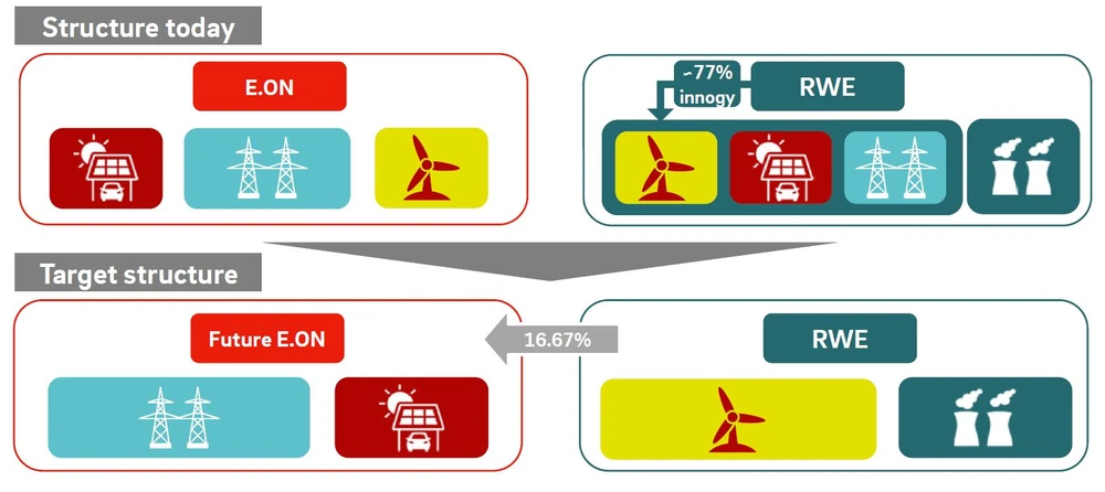 Zwei von drei Teilen des Megadeals sind bereits genehmigt. Neben der erwarteten Zustimmung zur Übernahme der Erneuerbaren-Energien-Geschäfte durch RWE haben die Kartellwächter in Bonn und Brüssel auch die Beteiligung von RWE an E.on genehmigt. Rund vier Milliarden Euro ist der 16,67-Prozent-Anteil wert, als zukünftig größter Aktionär erhält RWE zudem einen Posten im E.on-Aufsichtsrat.