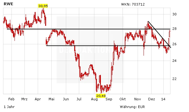 DER AKTIONÄR teilt die Skepsis der Analysten auch weiterhin nicht. Neben dem fundamentalen Rückenwind spricht auch die Charttechnik für beide Aktien. Bei RWE ist die Spekulation auf eine kurzfristige Kursbelebung bereits gut aufgegangen. Langfristig bietet allerdings E.on nach wie vor die besseren Chancen - unter anderem aufgrund des schlechteren Energiemixes von RWE. Hellt sich die schwierige Lager der Versorger wieder etwas auf, sind bei der E.on-Aktie Kurse um 18,50 Euro gut möglich.