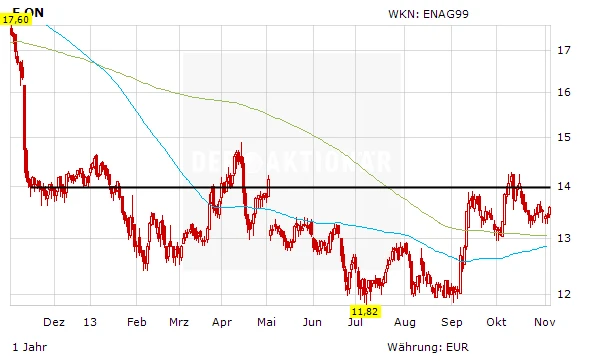 Die Reform des CO2-Handels dürfte vor allem E.on freuen. Seine sauberen Gaskraftwerke dürften von einer Verknappung der Verschmutzungsrechte stark profitieren, das sie dadurch besonders im Vergleich zu Kohlekraftwerken, auf die RWE stark setzt, rentabler werden. Der umkämpfte Umbau der Ökostromförderung wird derweil weiter kontrovers diskutiert. Bis auch hierzu neue Details bekannt werden bleibt E.on der Favorit unter den deutschen Versorger-Aktien. Zur besseren fundamentalen Situation kommt beim Branchenprimus noch eine mit 4,8 Prozent deutliche höhere Dividendenrendite als bei RWE (3,6 Prozent). Das Kursziel lautet weiter 18,50 Euro. Ein Stopp bei 12,50 Euro sichert ab.