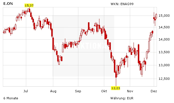 Die Deutsche Bank hat das Kursziel für E.on von 12 auf 15 Euro angehoben und die Einstufung auf "Hold" belassen. Die radikalen Umbaupläne bei Deutschlands größtem Energieversorger beinhalteten Chancen für Anleger, kommentierte der Analyst Alexander Karnick. E.on hatte angekündigt, das bisherige Hauptgeschäft mit Kohle-, Gas- und Atomenergie abzuspalten und sich stärker auf die Erneuerbaren Energien zu konzentrieren. Das lässt aus Sicht von Karnick eine höhere Bewertung für die E.on-Aktie zu.