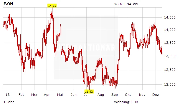 DER AKTIONÄR favorisiert unter den deutschen Versorger-Aktien ebenfalls weiter E.on. Der Düsseldorfer Konzern hat in den vergangenen Jahren schmerzhafte Einschnitte vorgenommen und sich so auf die Herausforderungen am heimischen Strommarkt eingestellt. Der Kursrutsch der vergangenen Jahre ist daher übertrieben. Die Aktie hat weiterhin Luft bis 18,50 Euro. Ein Stopp bei 12,50 Euro sichert vor heftigeren kurzfristigen Turbulenzen ab.
