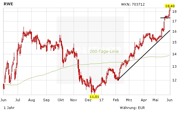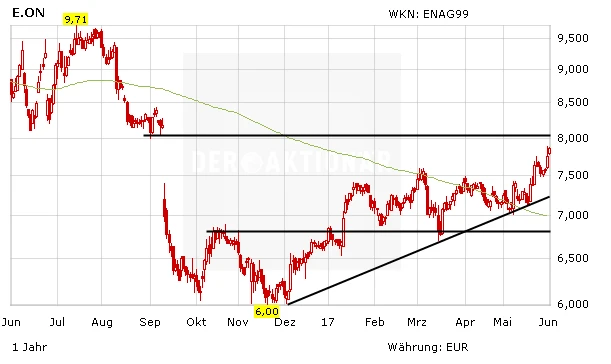 Das sicherste Investment bietet Innogy. Ein verlässliches Geschäft und eine hohe Dividendenrendite machen die Aktie zu einer Art Festgeldersatz. Spekulativer ist der zweite „grüne Versorger“ E.on. Sollte ein Paketverkauf von Uniper klappen, dürfte sich die angeschlagene Bilanz wieder verbessern. Auch das Chartbild stimmt. Für spekulative Anleger ist E.on sehr interessant.