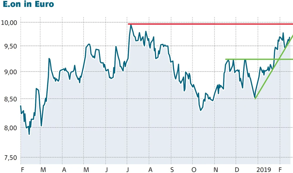 Der große Anteil des Netzgeschäfts sorgt für eine hohe Dividendensicherheit, denn der Bereich ist lukrativ und staatlich garantiert. Für konservative Anleger ist E.on somit bestens geeignet. Wer investiert ist, bleibt an Bord und lässt die Gewinne laufen. Mit dem Ausbruch über das 52-Wochen-Hoch bei 9,95 Euro würde ein neues Kaufsignal generiert.