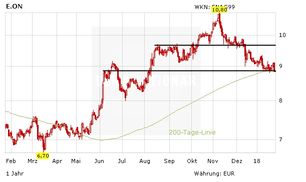 E.on hat sich frühzeitig für die neue Energiewelt gerüstet. Das sollte sich künftig auszahlen und in Wachstum widerspiegeln. Trotz der Zuversicht des Managements fehlen kurzfristig aber die Impulse für die Aktie. Nach wie vor bewegt sich der Kurs im Bereich der 200-Tage-Linie knapp unter der 9,00-Euro-Marke. Neueinsteiger warten vorerst ab. Wer investiert ist, bleibt dabei und beachtet den Stopp bei 7,80 Euro.
