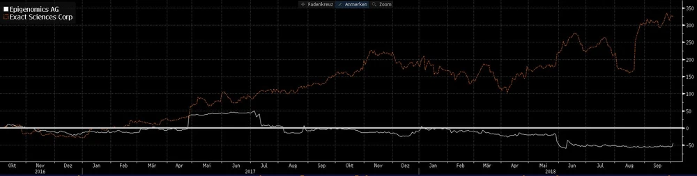 Der größte Rivale in den USA von Epigenomics ist der AKTIONÄR-Tipp Exact Sciences. Zwar haben beide Firmen einen Darmkrebsvorsorgetest, jedoch mit einem unterschiedlichen Ansatz. Allerdings brummt bei den Amerikanern das Geschäft mit dem Test namens Cologuard. DER AKTIONÄR berichtete. Hinzu kommt: Der Mega-Vertriebsdeal mit dem Pharma-Konzern Pfizer, den Exact vor Kurzem vermelden konnte. Dies macht es für Epigenomics in den USA nicht einfacher, Epi proColon zu vertreiben.
