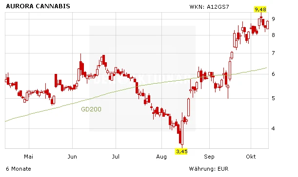 DER AKTIONÄR favorisiert im Sektor weiterhin die Aktie von Aurora Cannabis. Diese sollte zum einen vom Gang an die New York Stock Exchange profitieren, der noch im Oktober über die Bühne gehen soll. Zum anderen gilt das Unternehmen als direkter Profiteuer von einer weiteren Legalisierung von Cannabis in Europa. Das Unternehmen hat mit der Aurora Europe GmbH eine europäische Tochtergesellschaft. Zudem verfügt Aurora über zwei der weltweit nur sechs existierenden Produktionsstätten, die eine EU-GMP-Zertifizierung haben, also den hohen EU-Qualitätsstandards entsprechen.