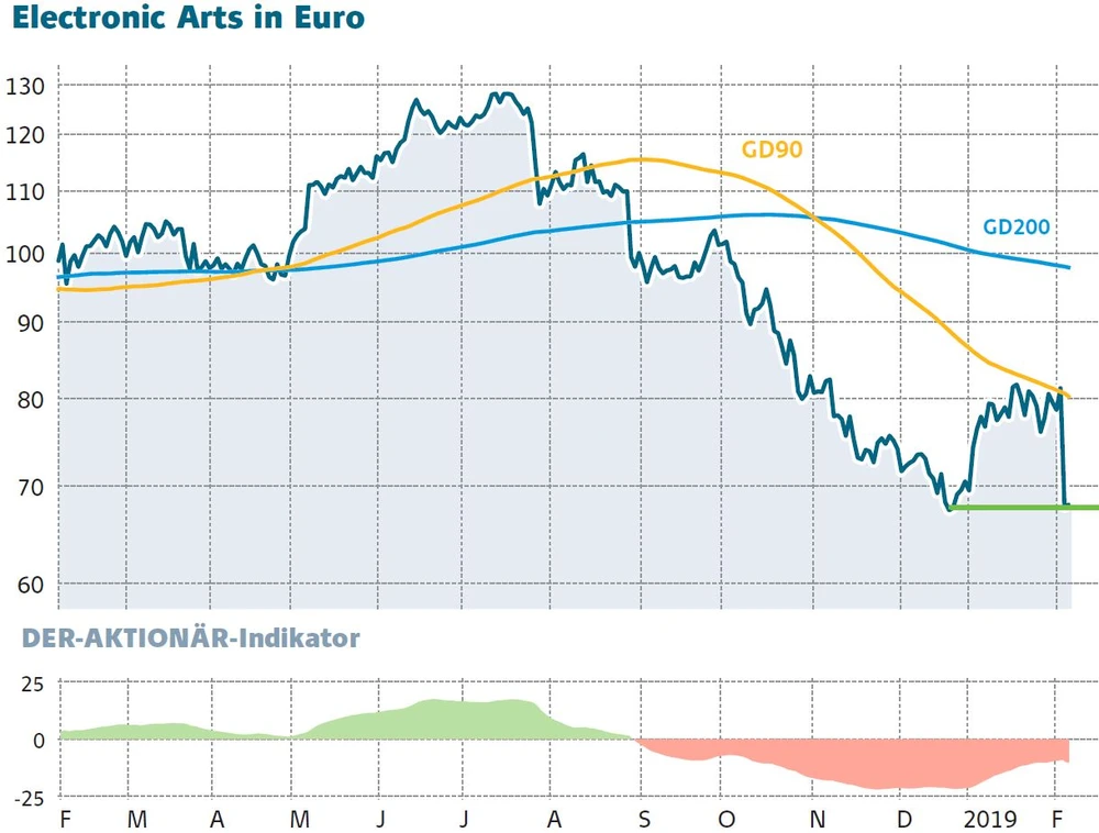 Angesichts eines KGV für die nächsten zwölf Monate von 15 bleibt die Aktie jedoch hochinteressant. Die Veröffentlichungen von „Anthem“ und „Apex Legends“ könnte zum Jahresende noch einmal überraschen, es gilt jedoch abzuwarten, bis nach dem 15 Prozent Kursrutsch ein Boden gefunden ist. Der Bereich zwischen 75 und 80 Dollar sollte hier beobachtet werden.