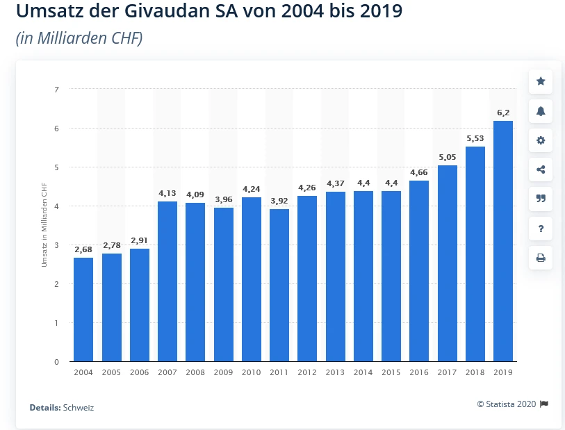 Givaudan ist der Platzhirsch in einem 26 Milliarden Dollar großen Markt. Auf Platz 2 folgt IFF vor Symrise und Firmenich. Die starke Marktposition wird die Aktie weiter beflügeln. Givaudan ist und bleibt für langfristig orientierte Anleger ein Basisinvestment!