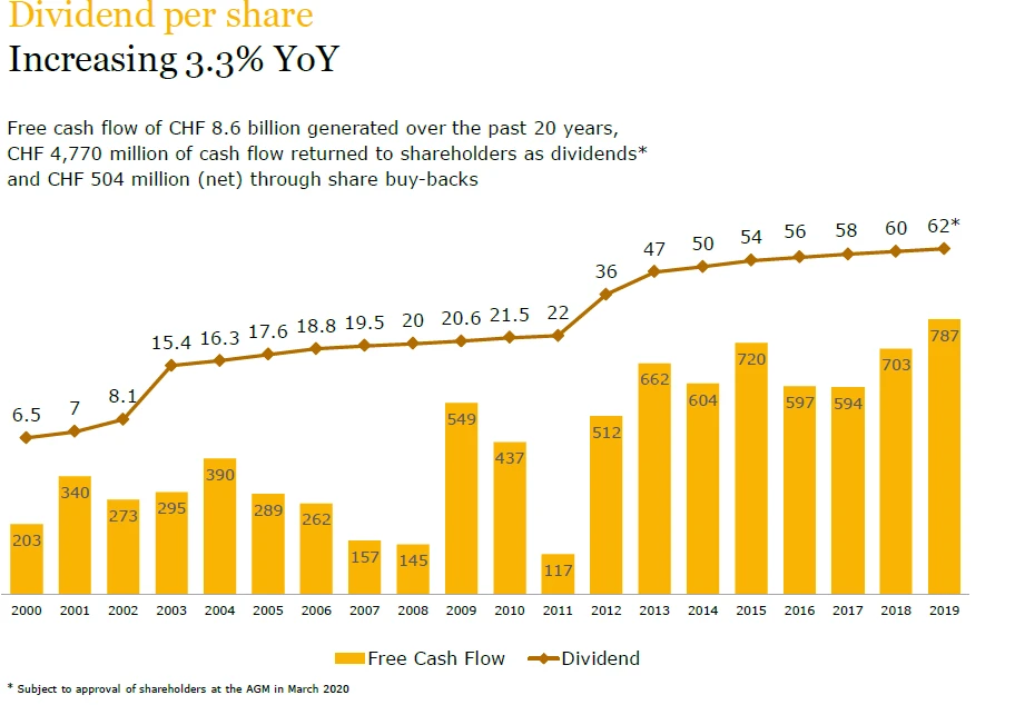 Der Umsatz ist seit 2010 von 4,24 Milliarden Franken auf 6,20 Milliarden Franken im Jahr 2019 geklettert. Im gleichen Zeitraum steigerte das Team um Vorstand Andrier Gilles den Gewinn je Aktie von 37,87 Franken auf 76,12 Franken.